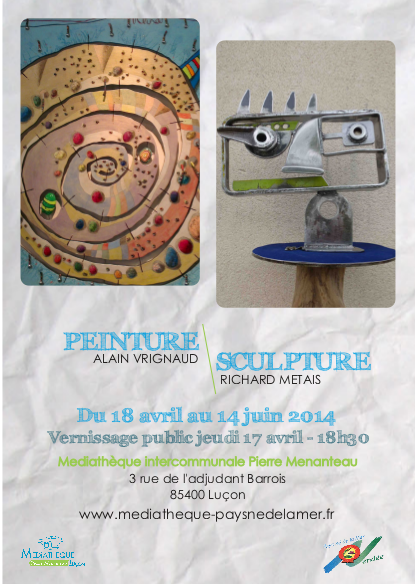 Exposition : RICHARD METAIS & ALAIN VRIGNAUD 16 avril 2014 · par Asso La Clé des Champs · dans Culture, infos. · La Clé des champs vous invite à venir partager l’univers de 2 artistes… Du 18 avril au 14 juin 2014 Mediathèque intercommunale Pierre Menanteau 3 rue de l’adjudant Barrois 85400 Luçon http://www.mediatheque-paysnedelamer.fr Partager : Cliquer pour partager sur X(ouvre dans une nouvelle fenêtre) X Cliquez pour partager sur Facebook(ouvre dans une nouvelle fenêtre) Facebook J’aime chargement… Sur le même thème
