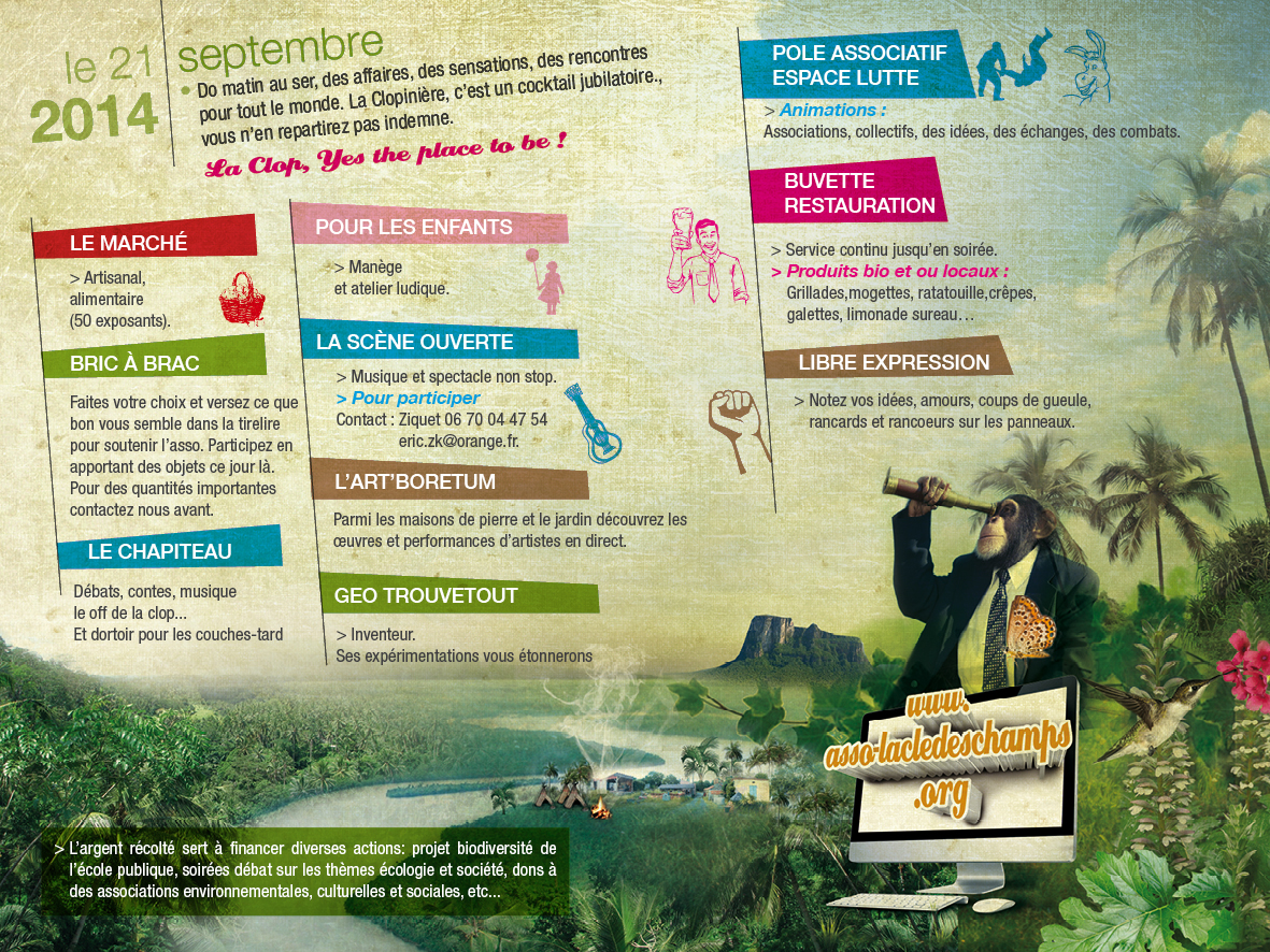 Village en fête 2014, c’est parti ! 11 juillet 2014 · par Asso La Clé des Champs · dans accueil, Village en fête. · Alors pour commencer, le flyer avec les infos pratiques… Partager : Cliquer pour partager sur X(ouvre dans une nouvelle fenêtre) X Cliquez pour partager sur Facebook(ouvre dans une nouvelle fenêtre) Facebook J’aime chargement… Sur le même thème