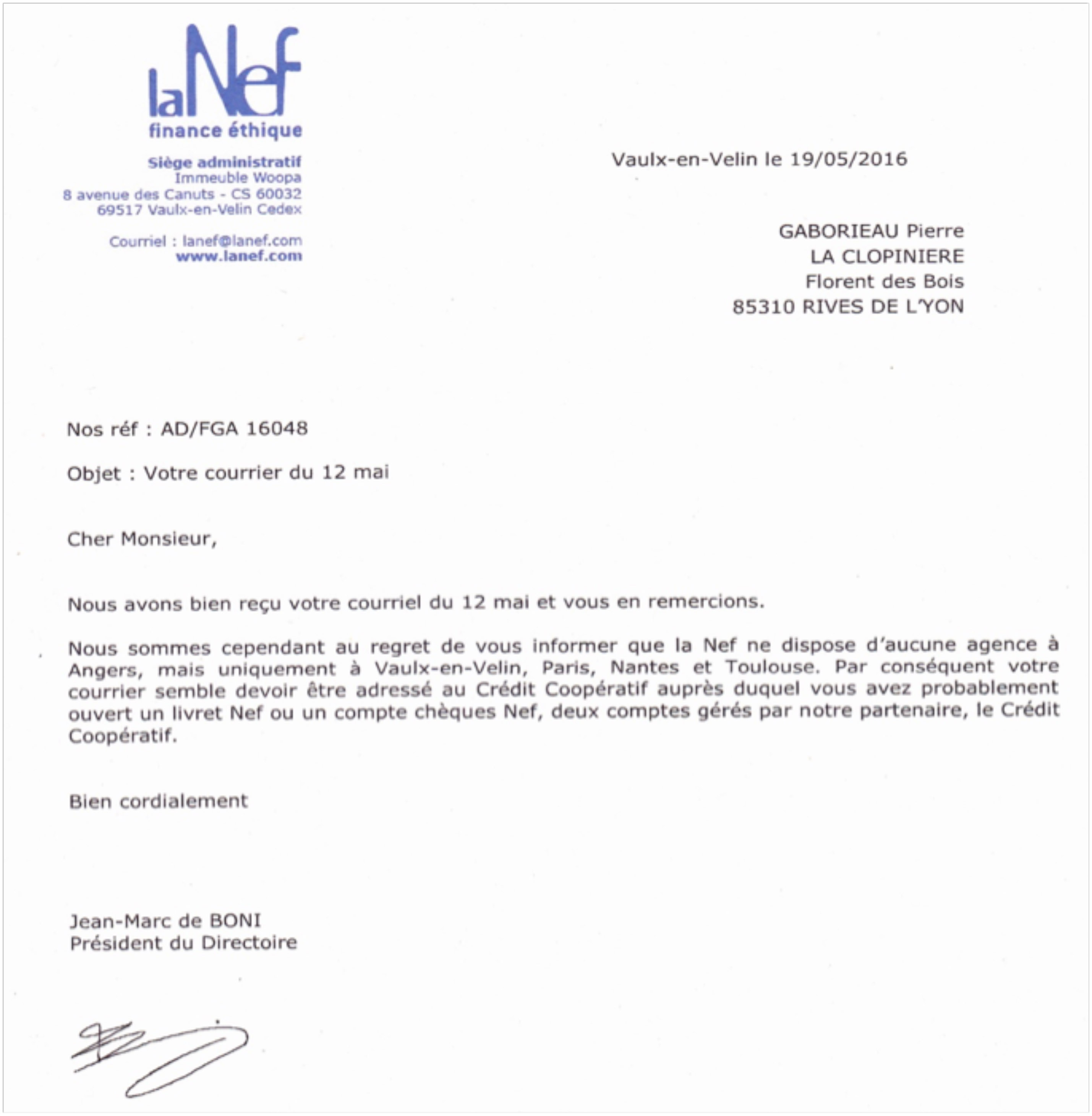 Voici la réponse que m’envoie la NEF suite au courrier : la NEF, banque éthique ou banque de flics ? Voyez le sens de la responsabilité, le courage et l’attention portée à la clientèle.