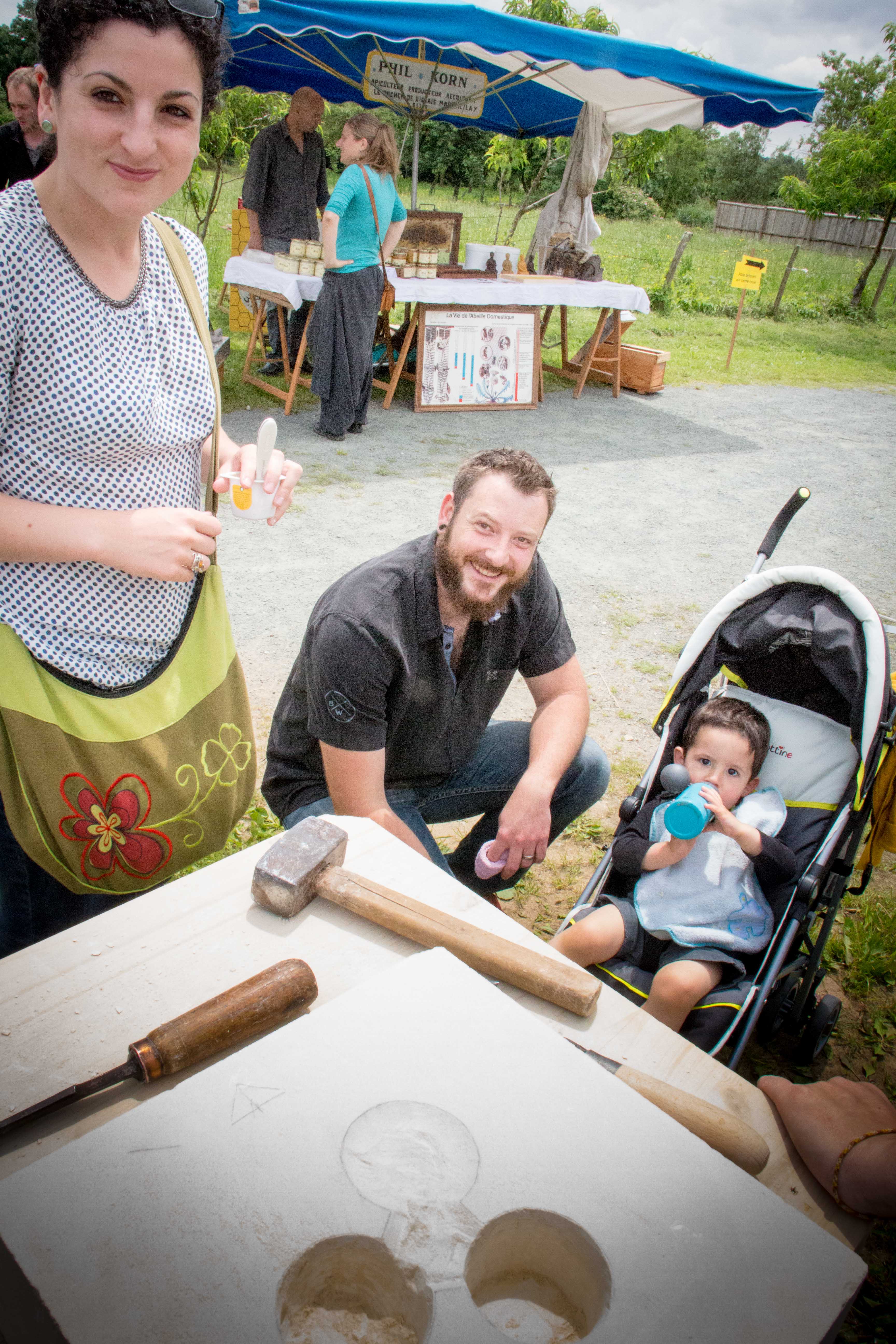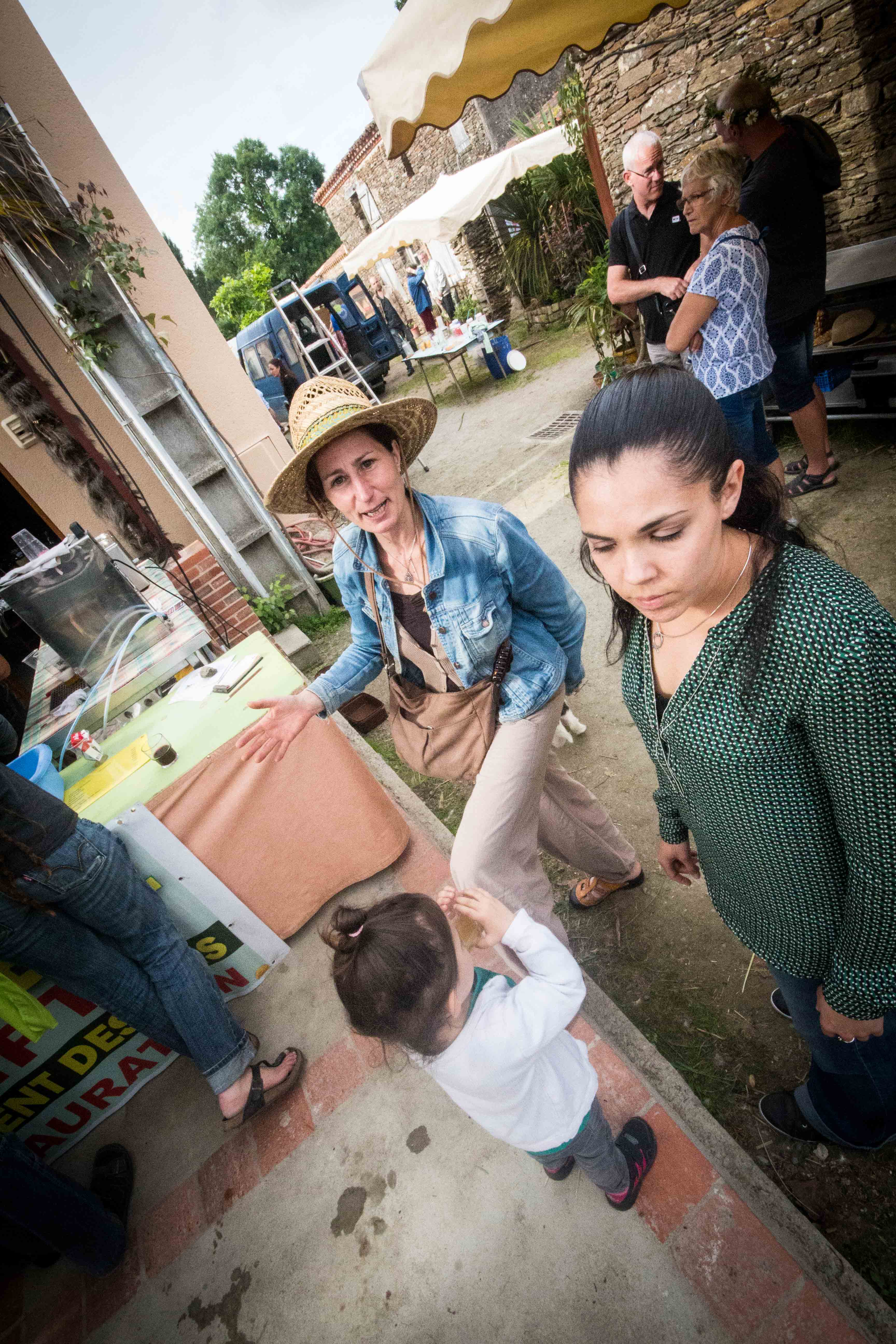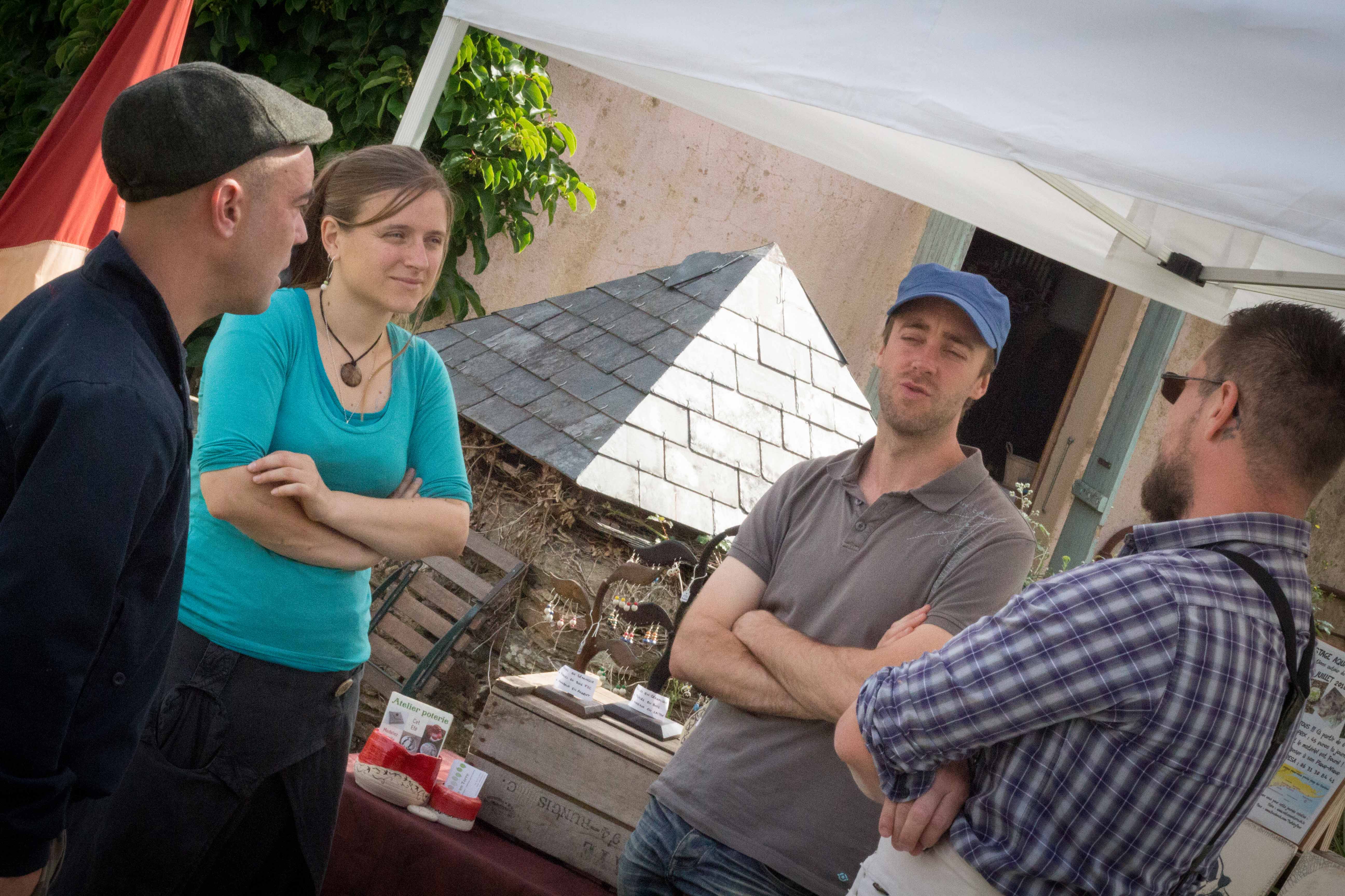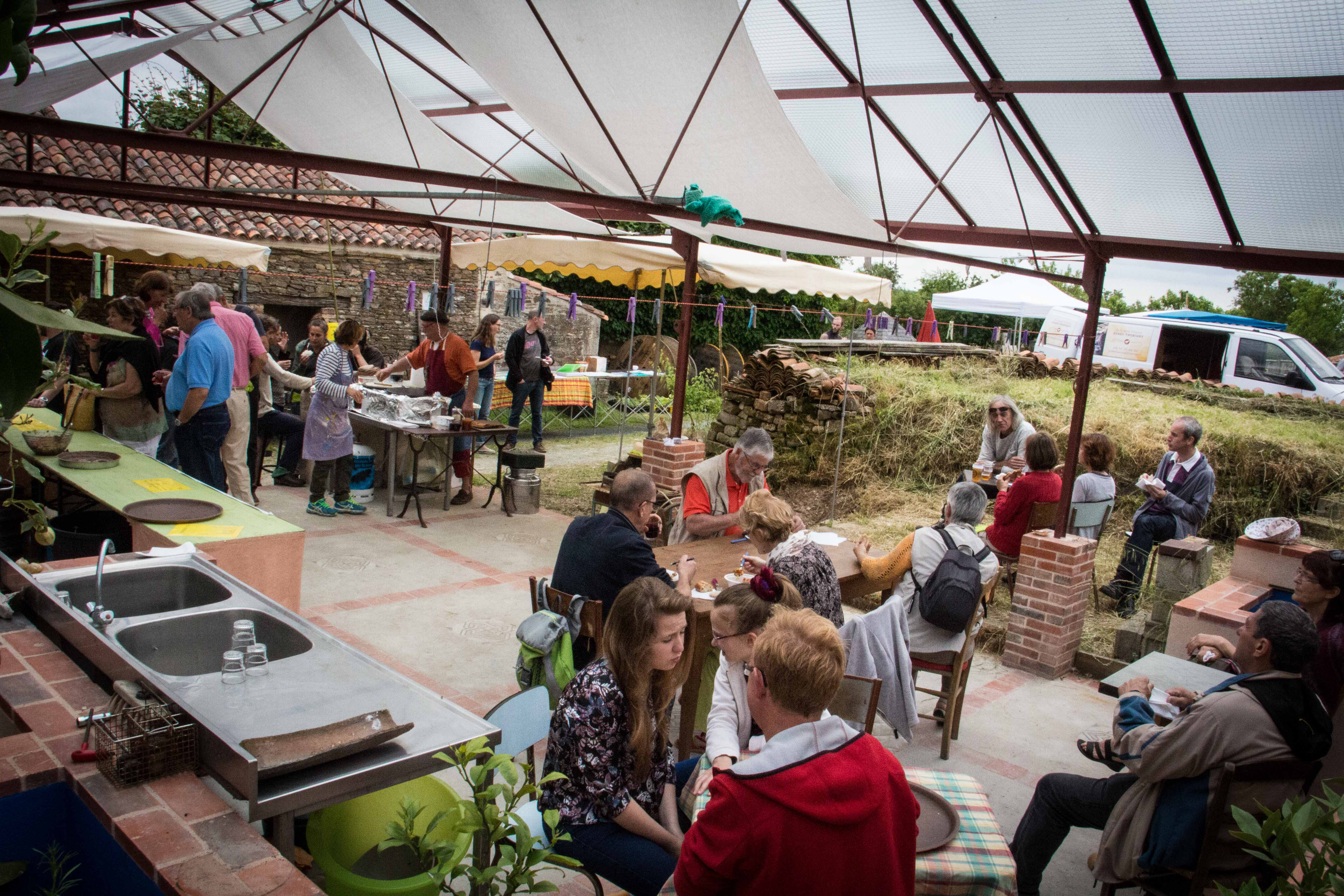 Peinture à la chaux et suédoise où l’on pouvait y aller de son coup de pinceau. Visites commentées du village et de l’arboretum, permaculture avec l’association Libera Verda. Métier à tisser, four à bois, brique de terre crue. Des exposants présentaient leur savoir faire et proposaient leurs produits (tailleur de pierre, forgeron, vannerie, poterie, miel…).