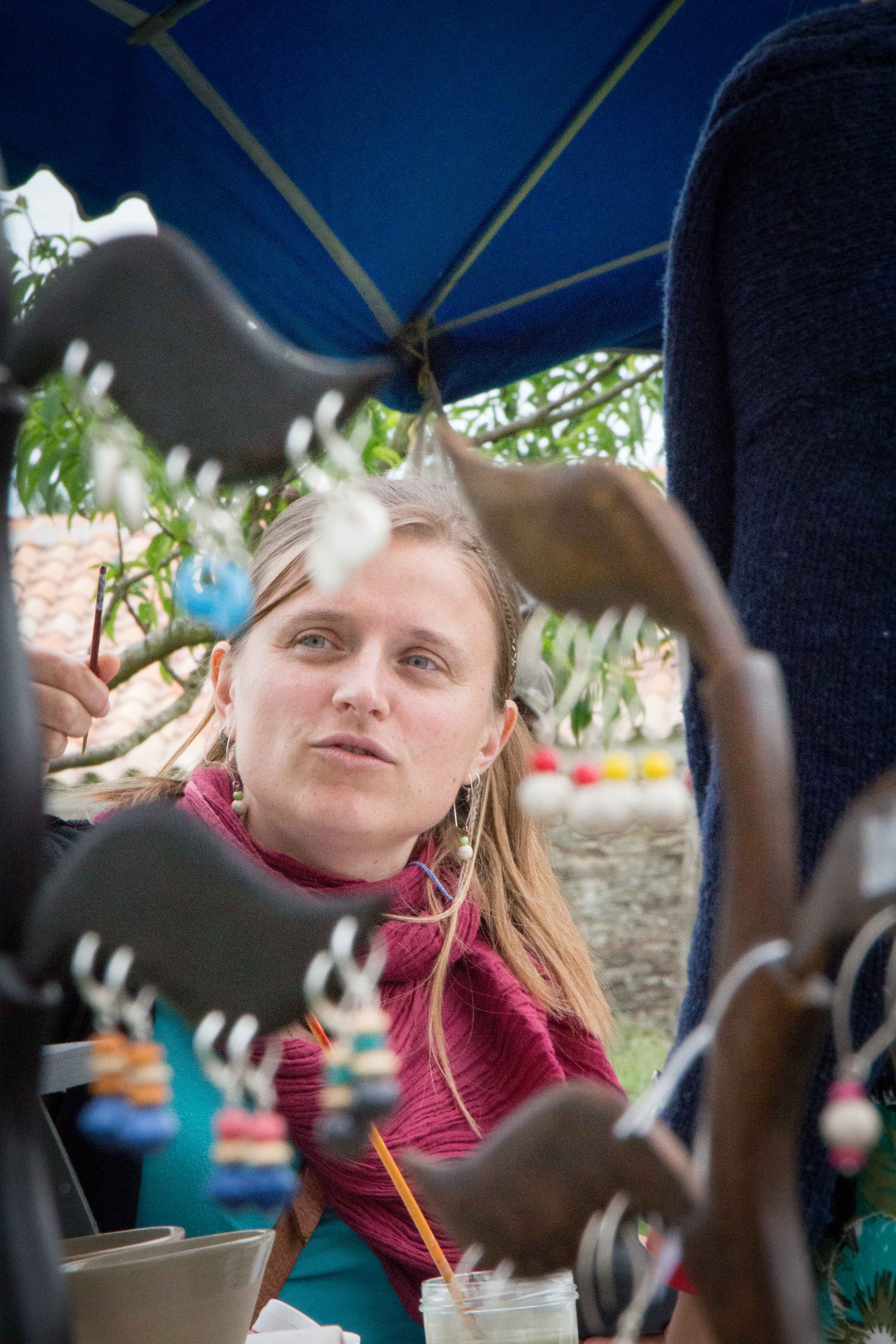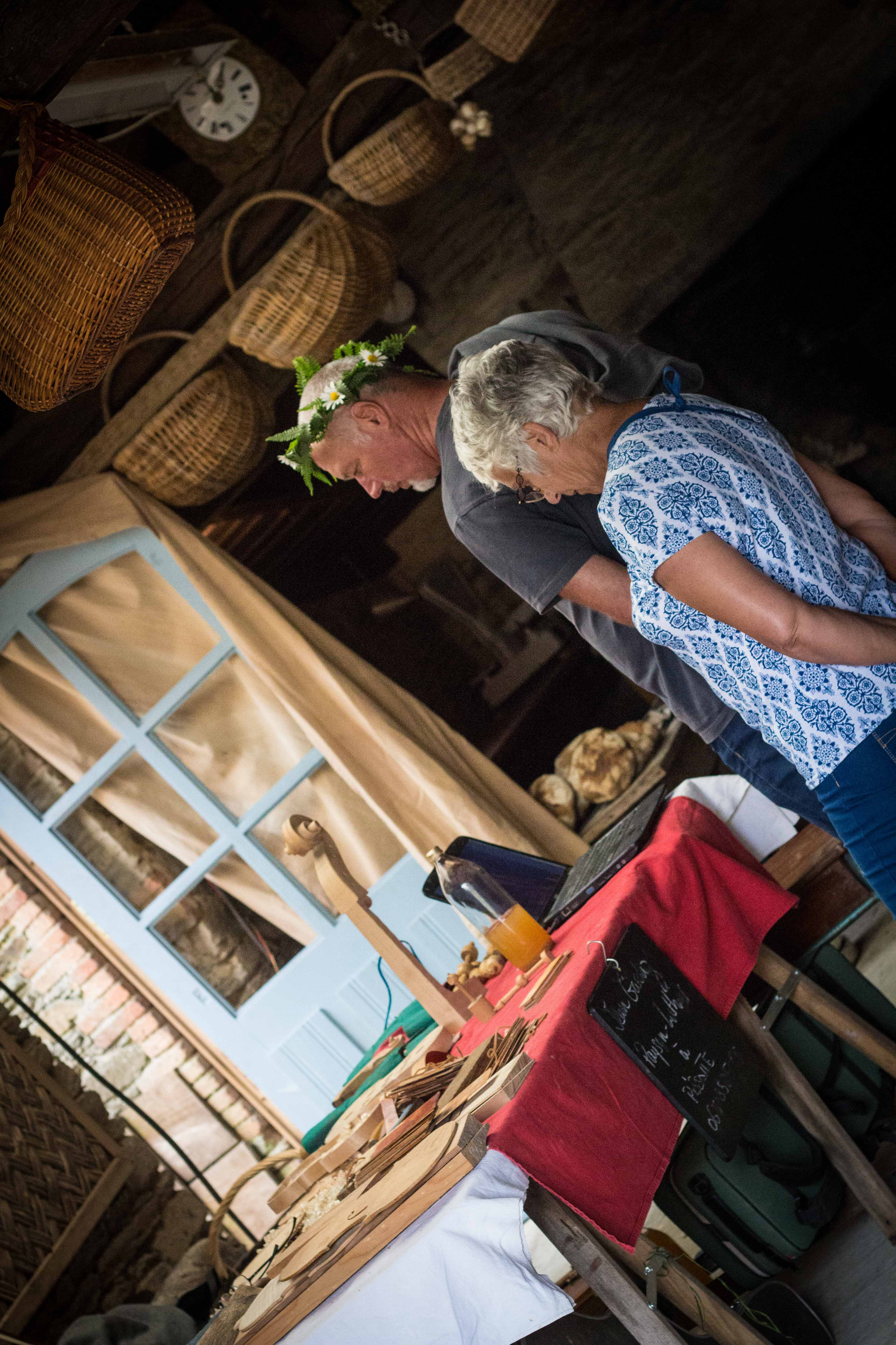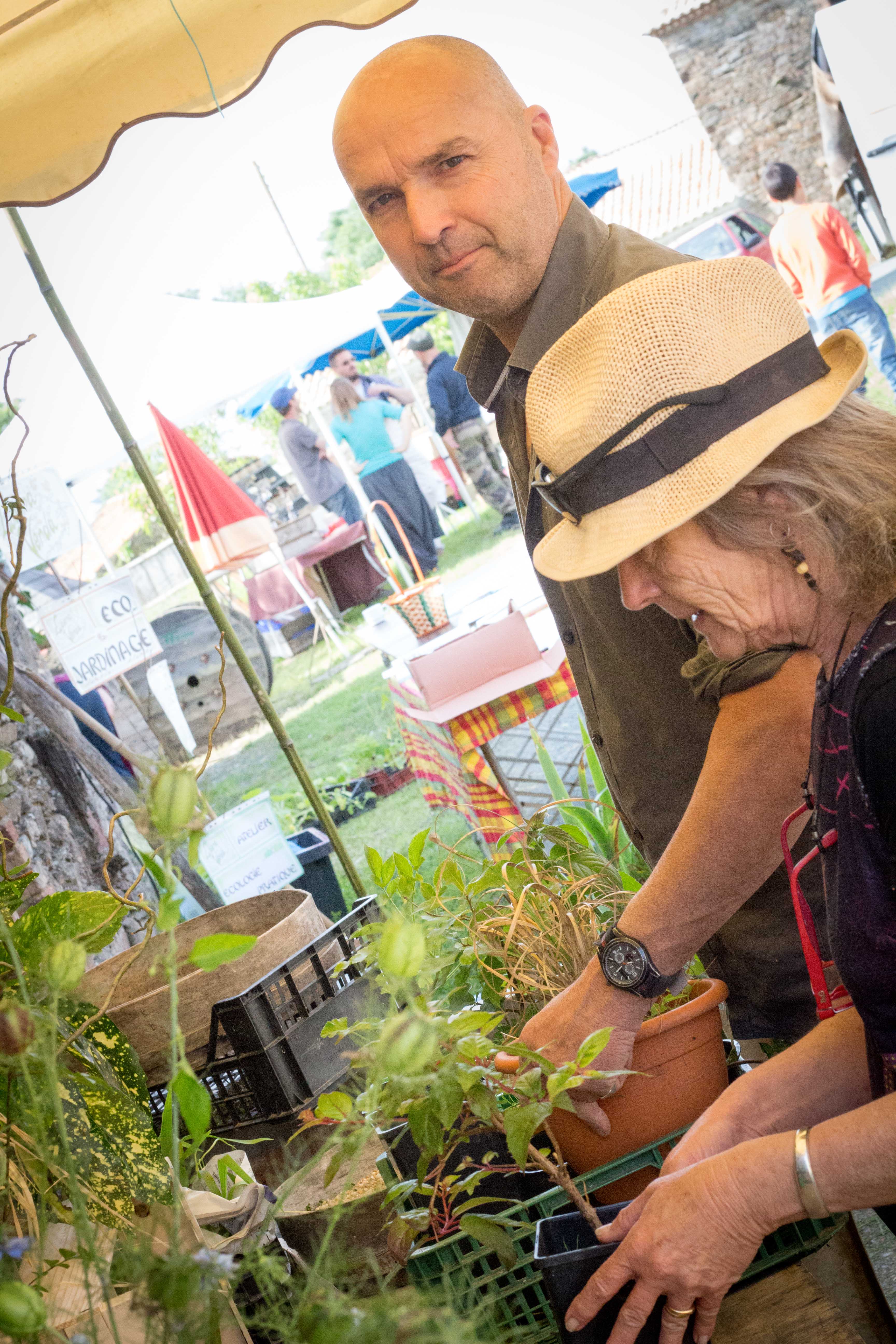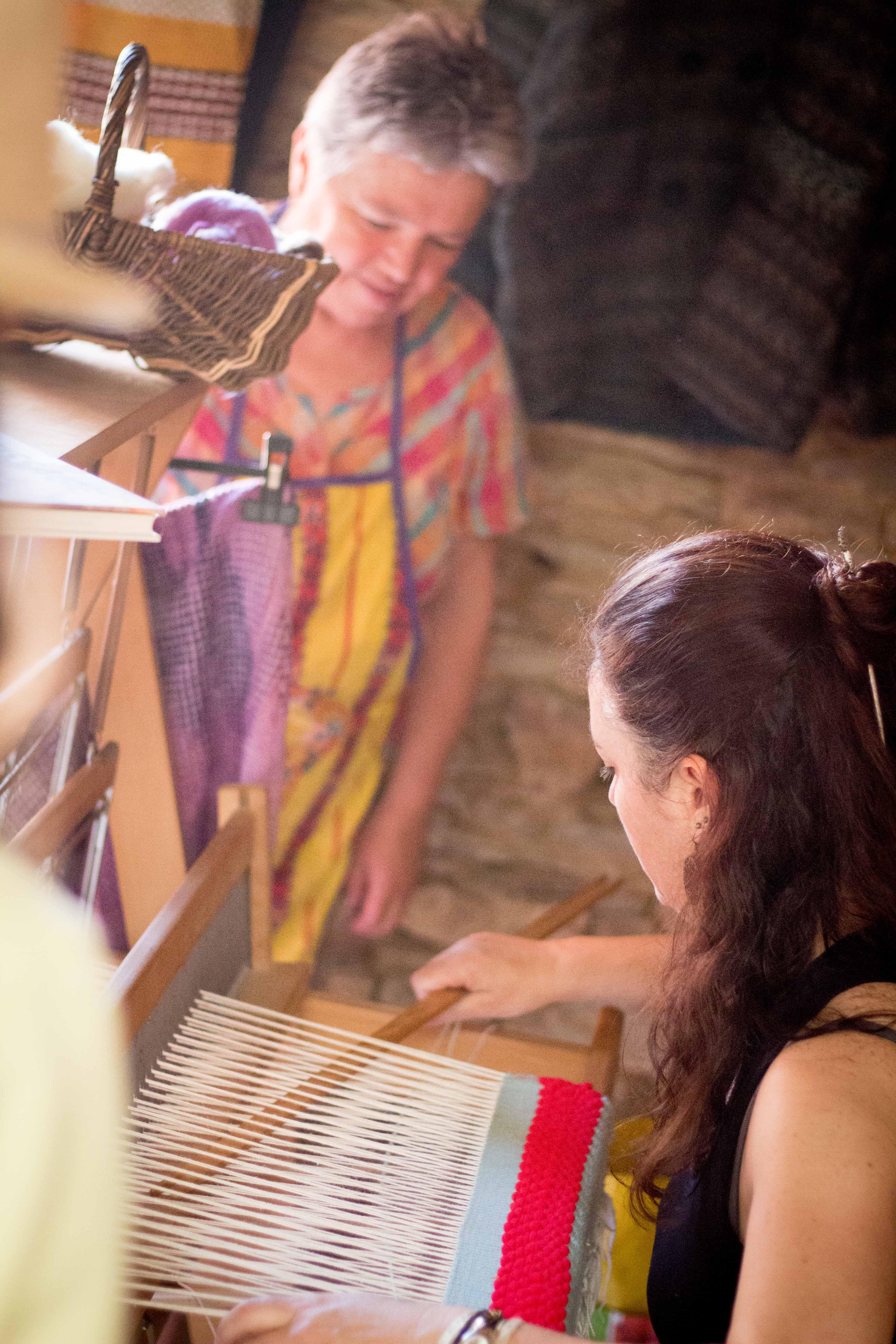 Peinture à la chaux et suédoise où l’on pouvait y aller de son coup de pinceau. Visites commentées du village et de l’arboretum, permaculture avec l’association Libera Verda. Métier à tisser, four à bois, brique de terre crue. Des exposants présentaient leur savoir faire et proposaient leurs produits (tailleur de pierre, forgeron, vannerie, poterie, miel…).