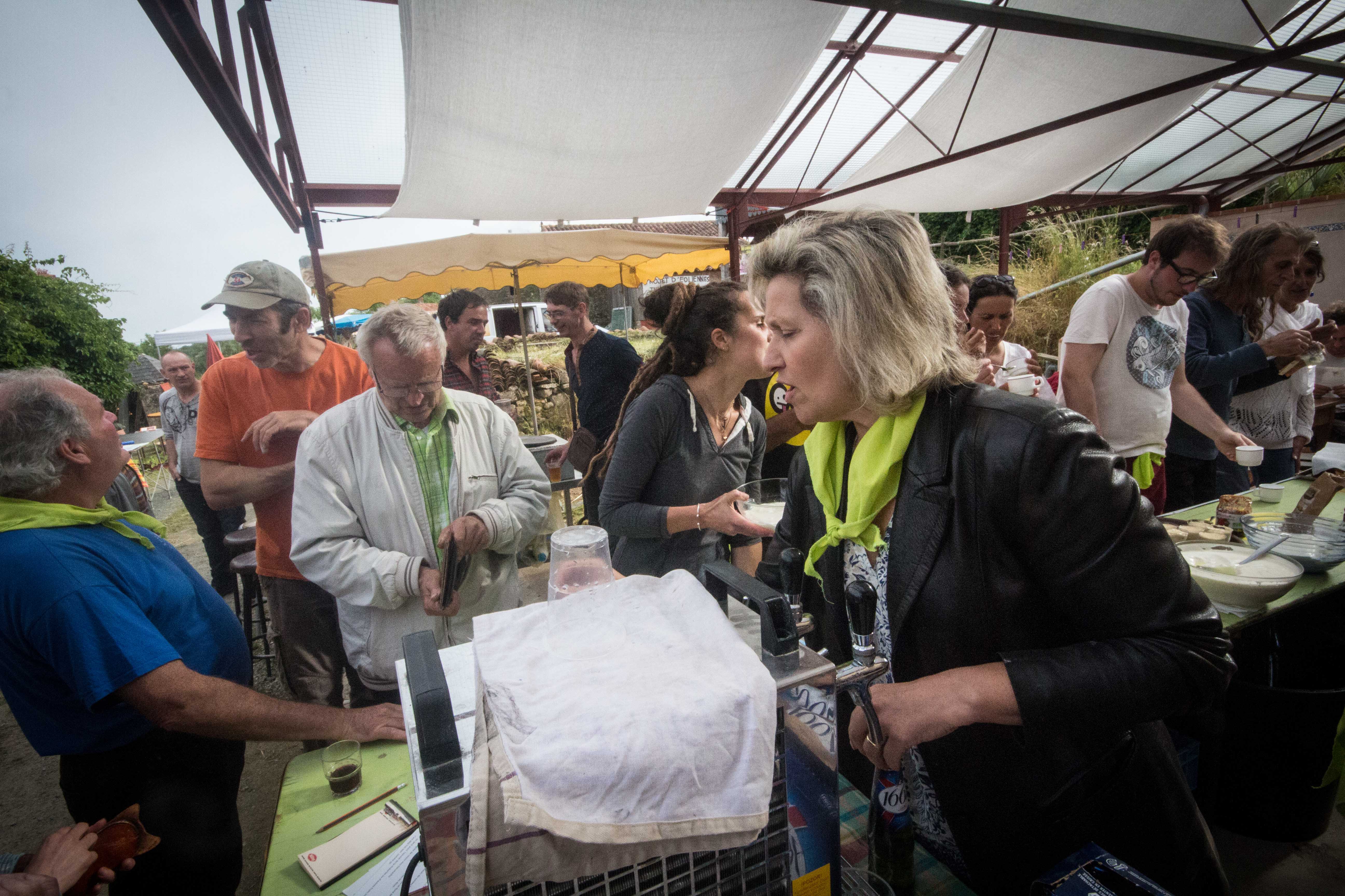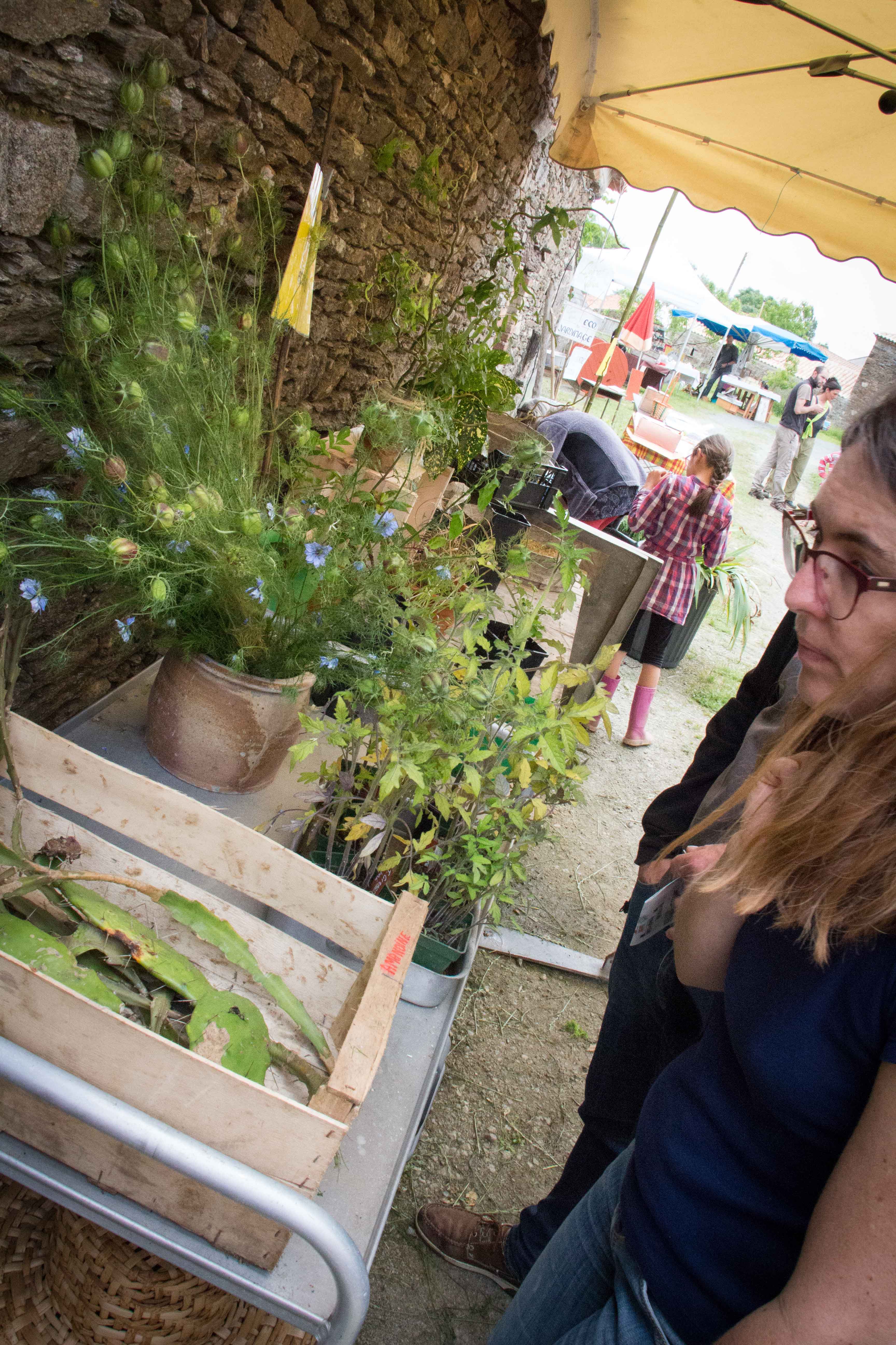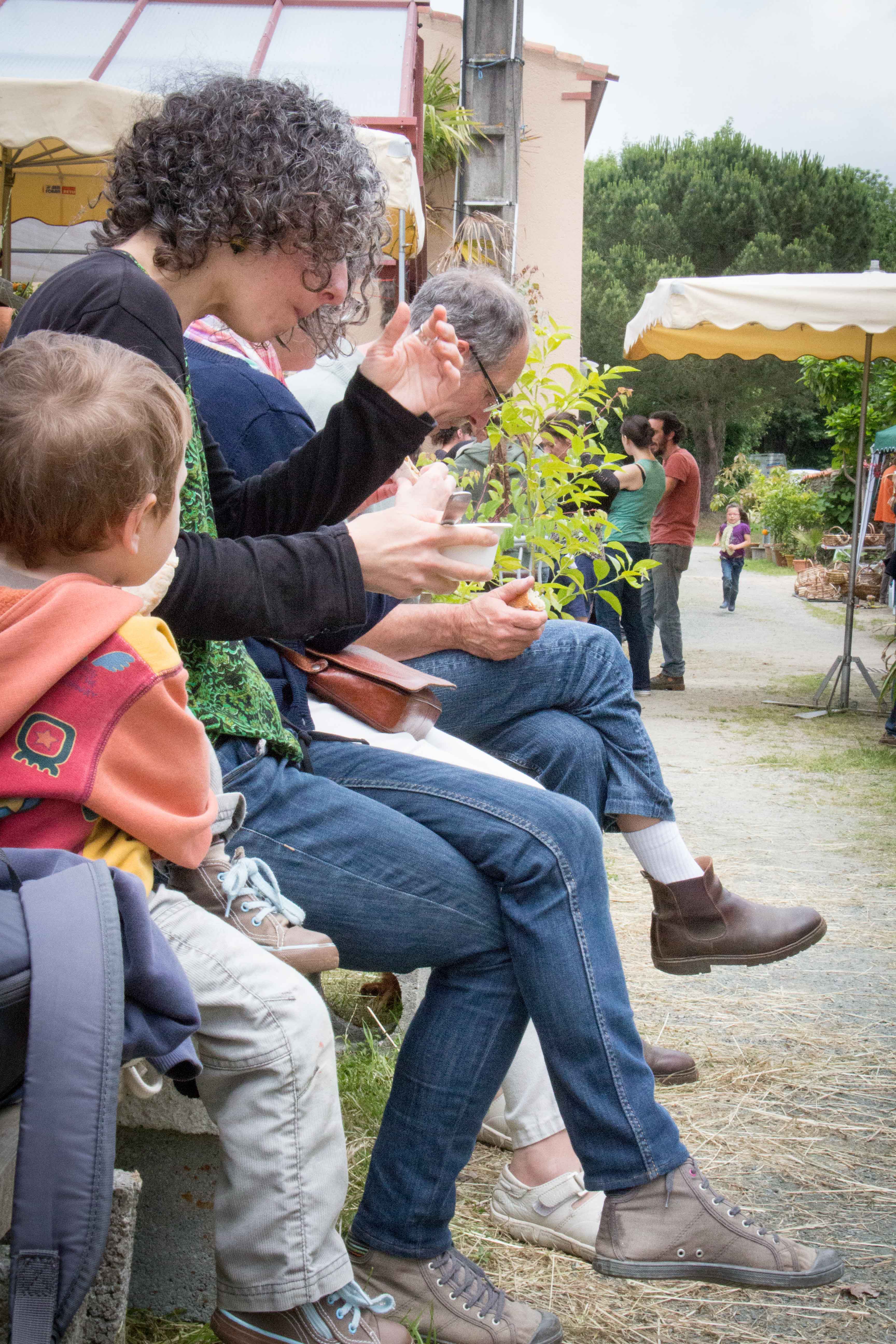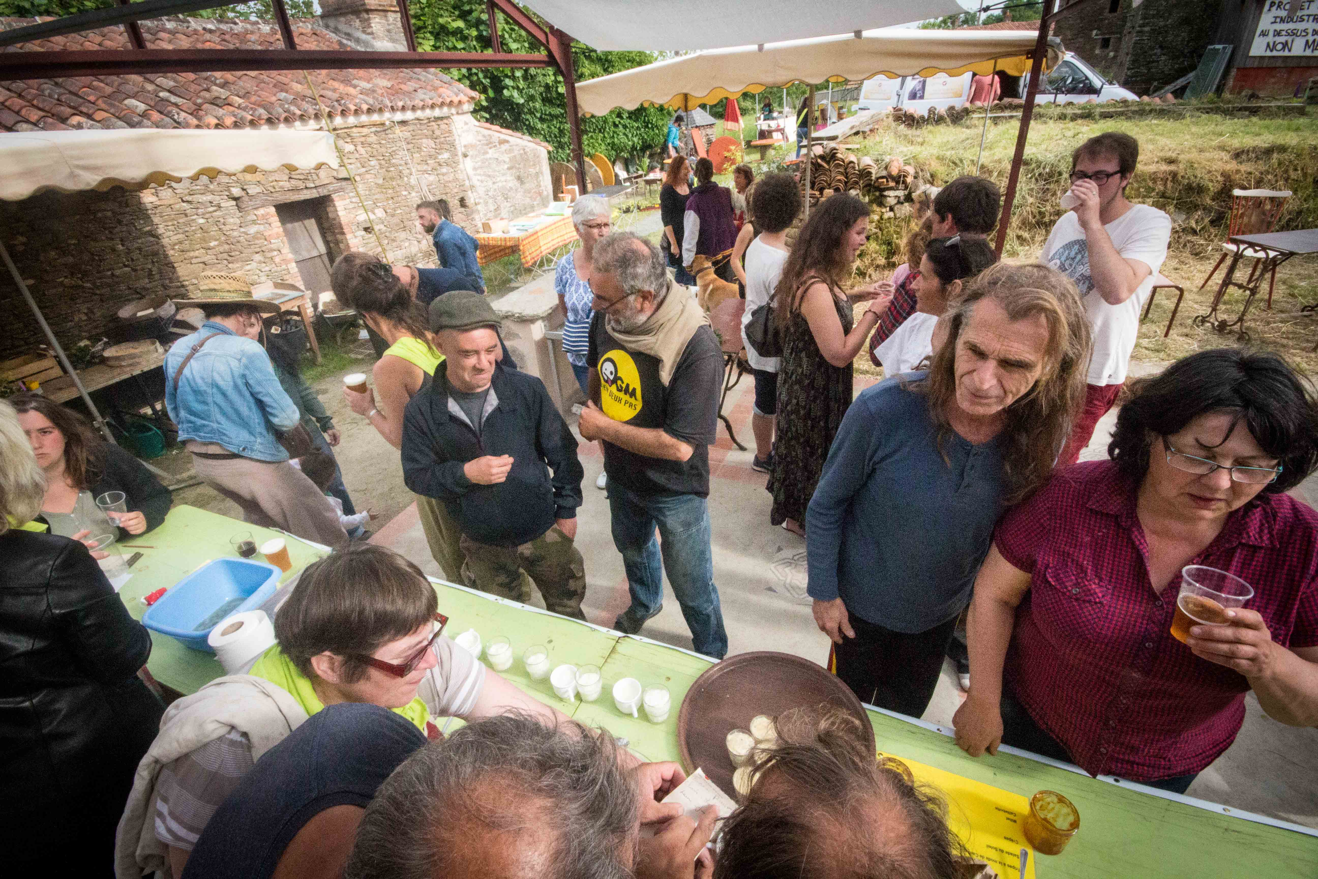 Restauration bio et ou locale : millet, caillebotte, foué, limonade de sureau, tripes au four à bois et n’oublions pas les tables du jardin libre et gratuit remplies de végétaux avec un slogan ravageur : « rempotez : remportez ». D’ailleurs il n’est pas resté la moindre herbette. Ni de bière dans les fûts au bar.