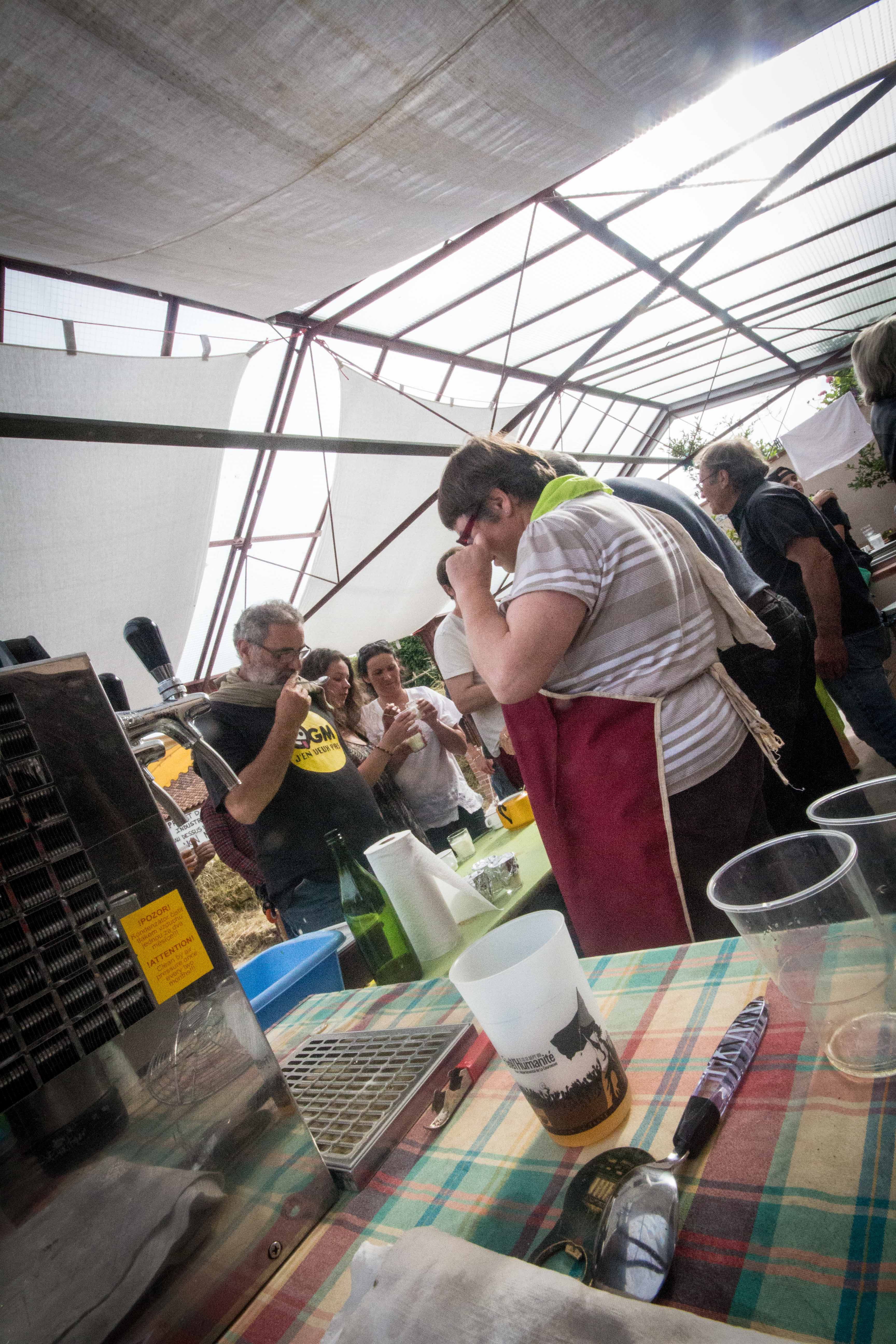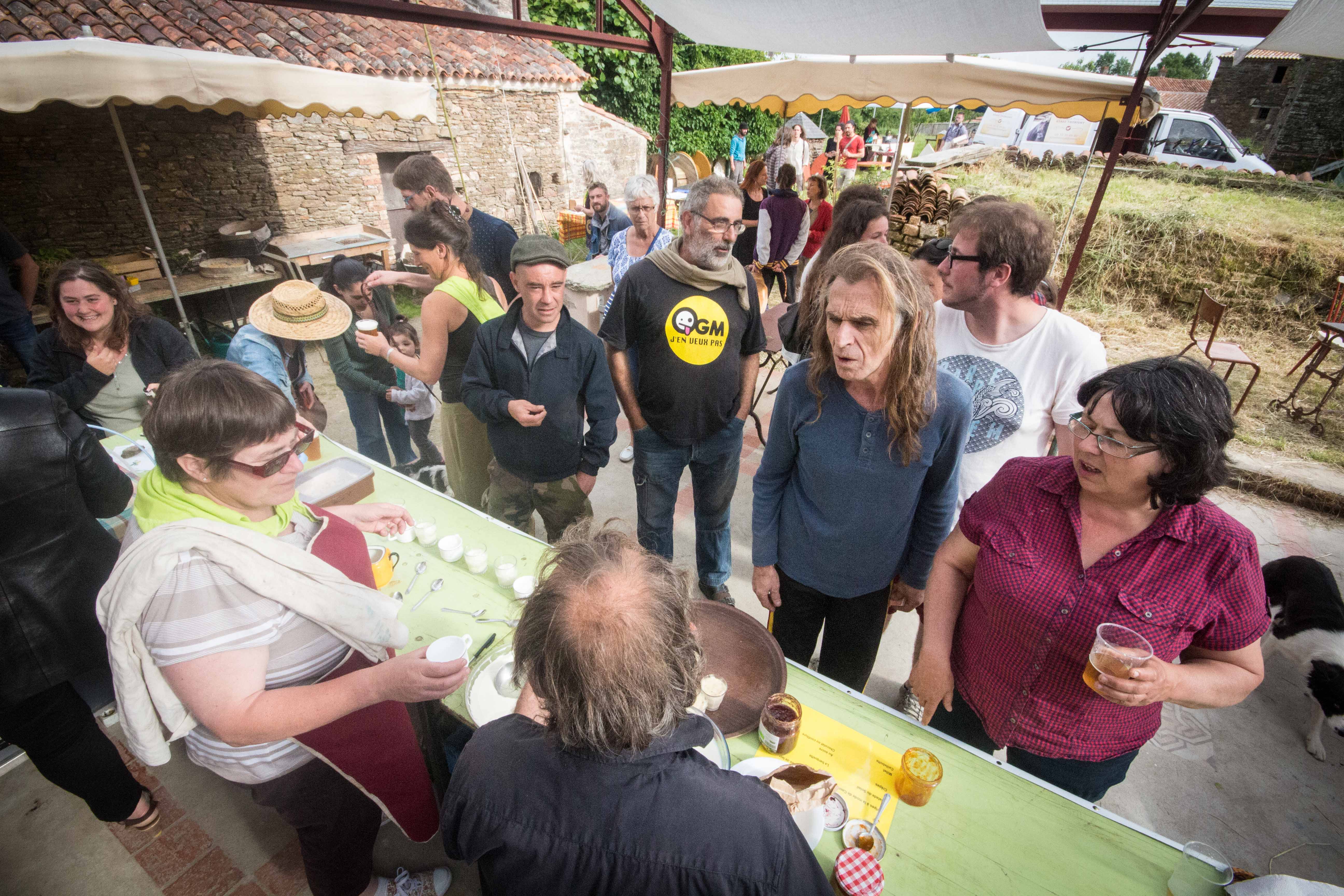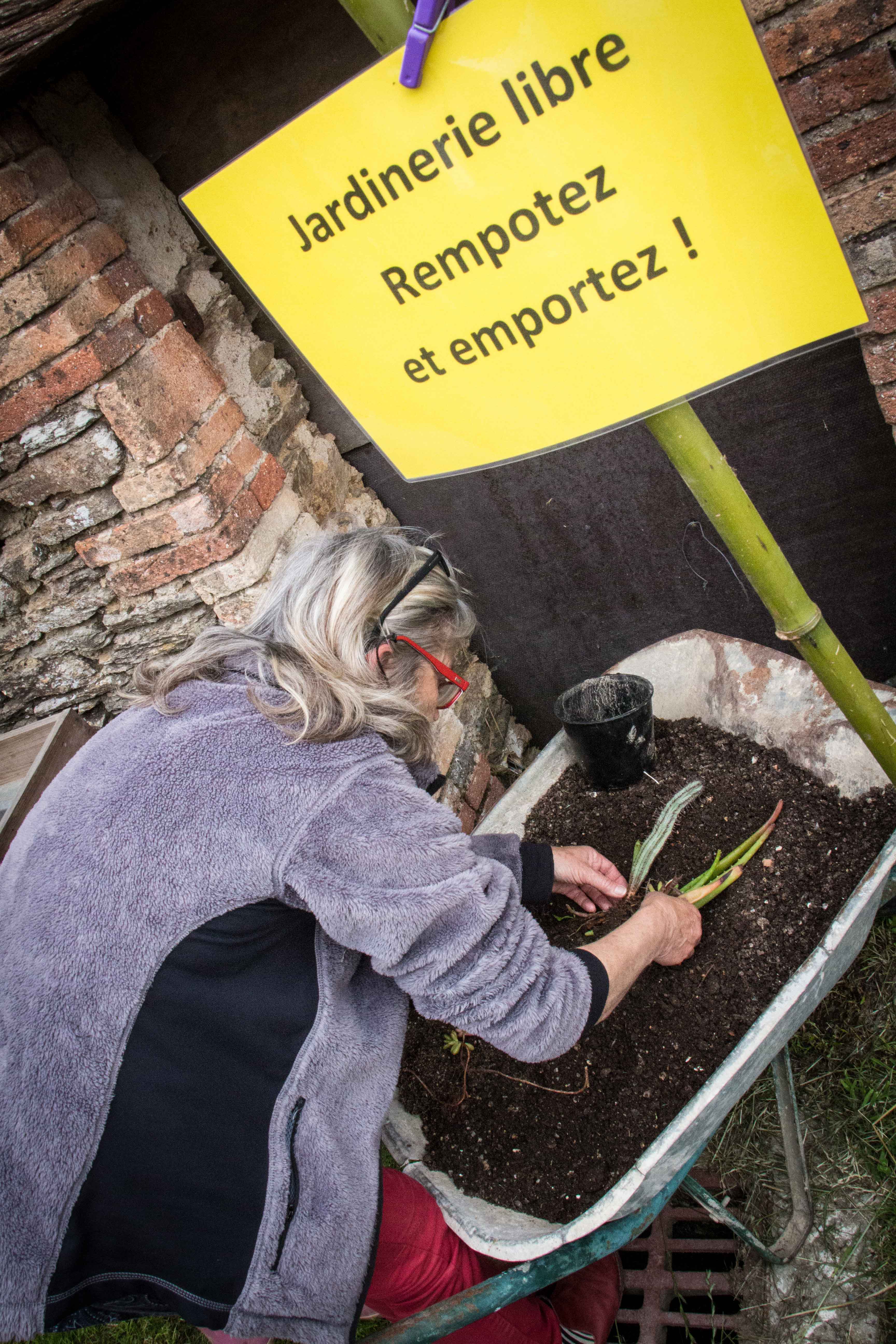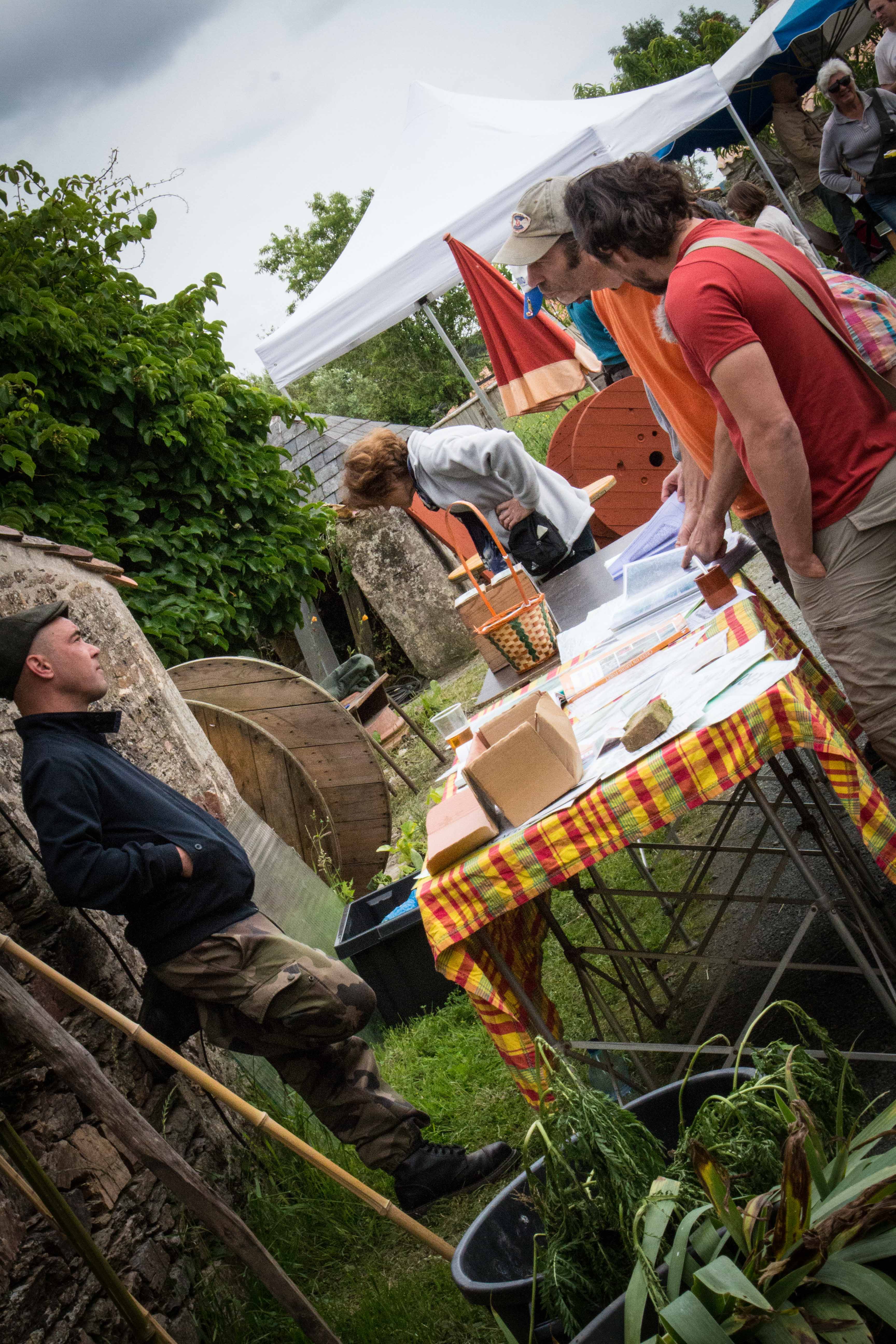 Restauration bio et ou locale : millet, caillebotte, foué, limonade de sureau, tripes au four à bois et n’oublions pas les tables du jardin libre et gratuit remplies de végétaux avec un slogan ravageur : « rempotez : remportez ». D’ailleurs il n’est pas resté la moindre herbette. Ni de bière dans les fûts au bar.