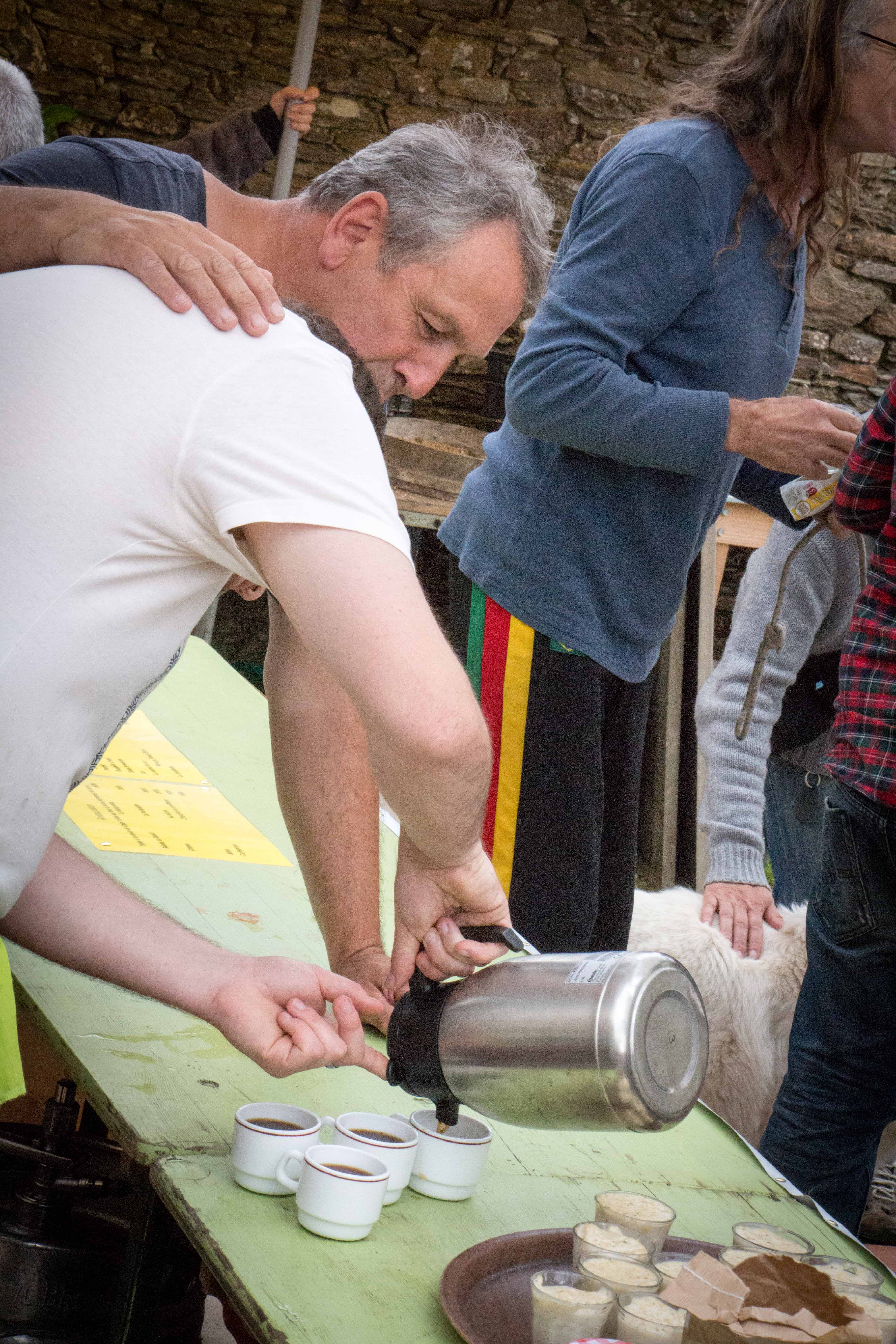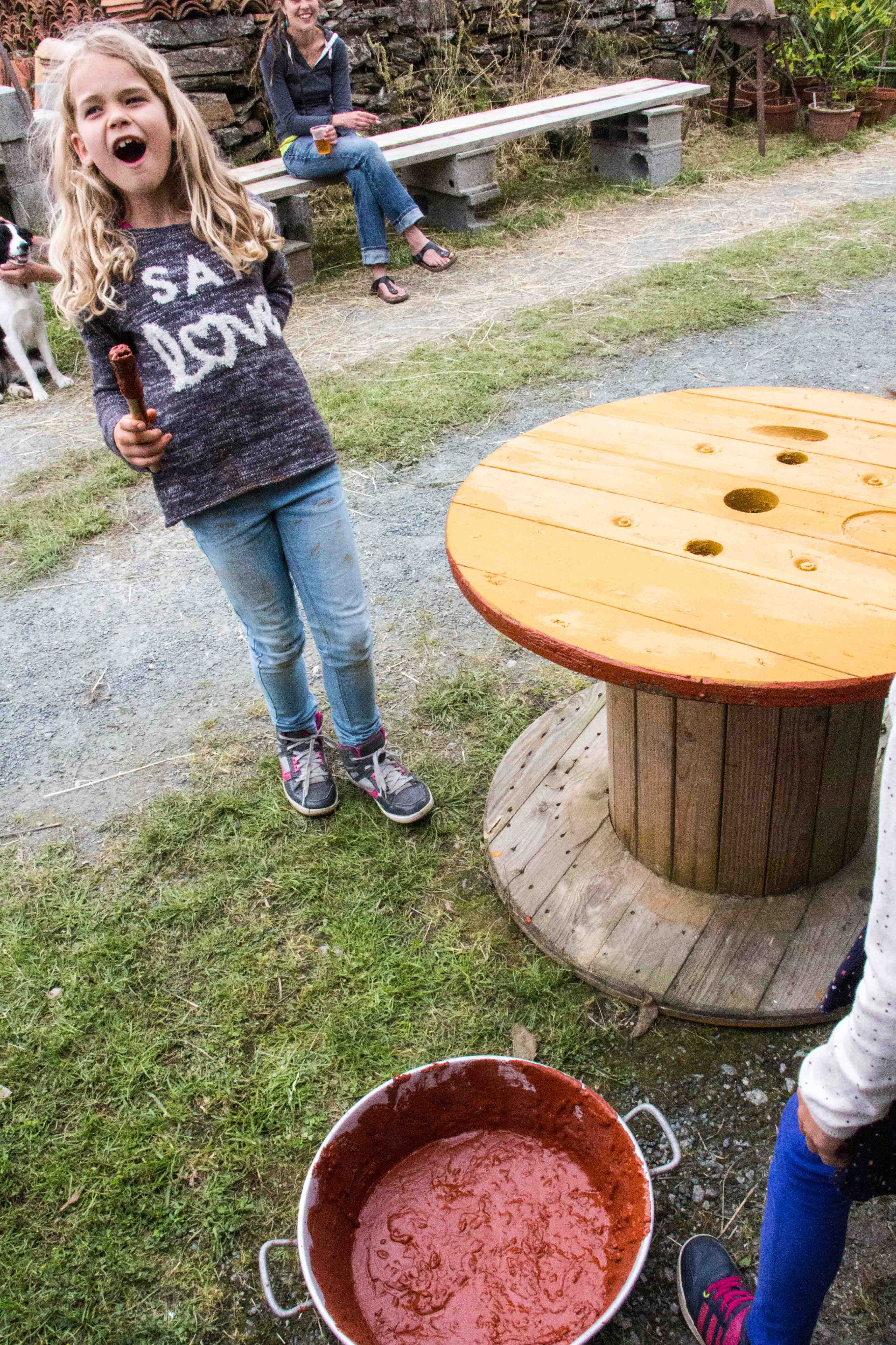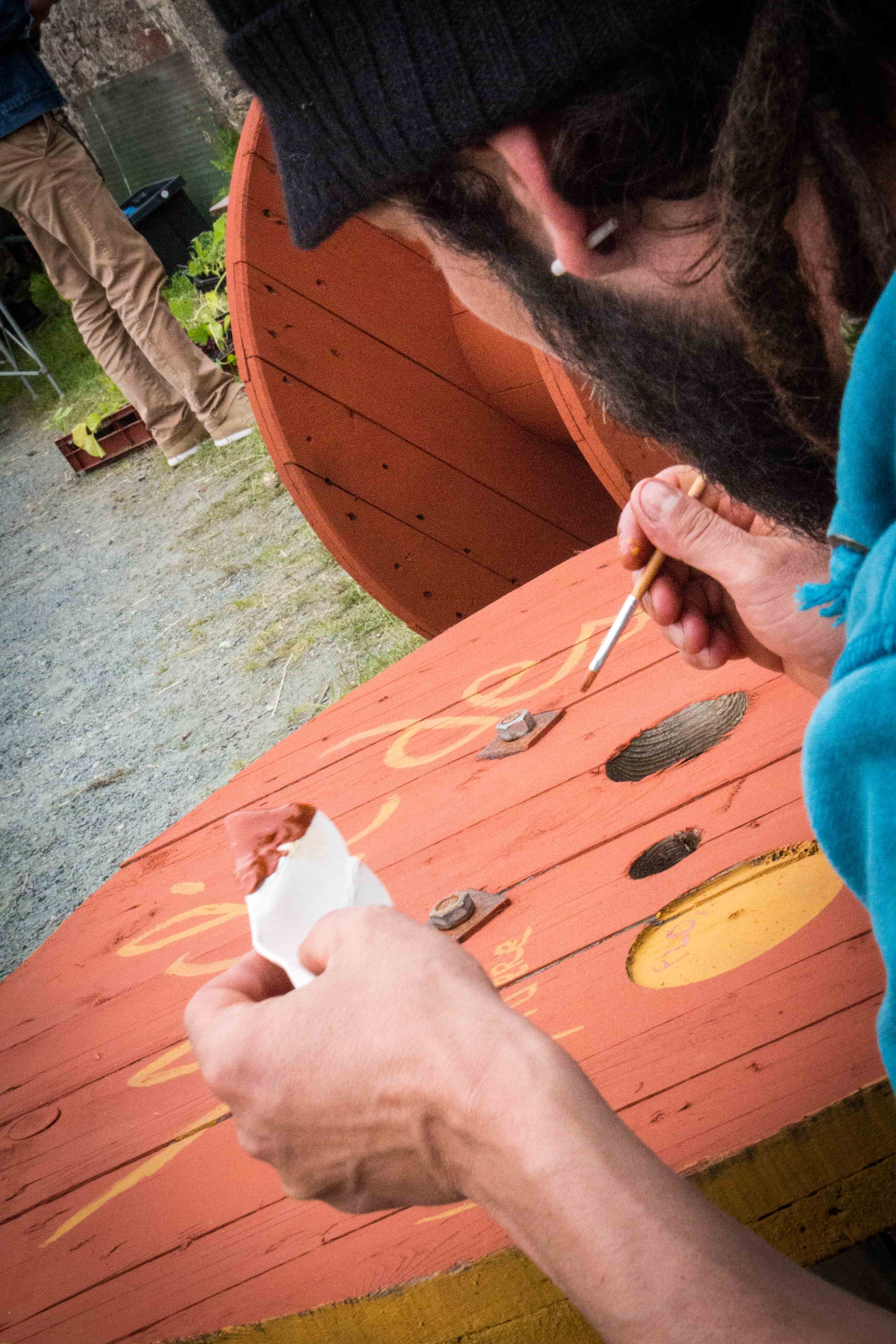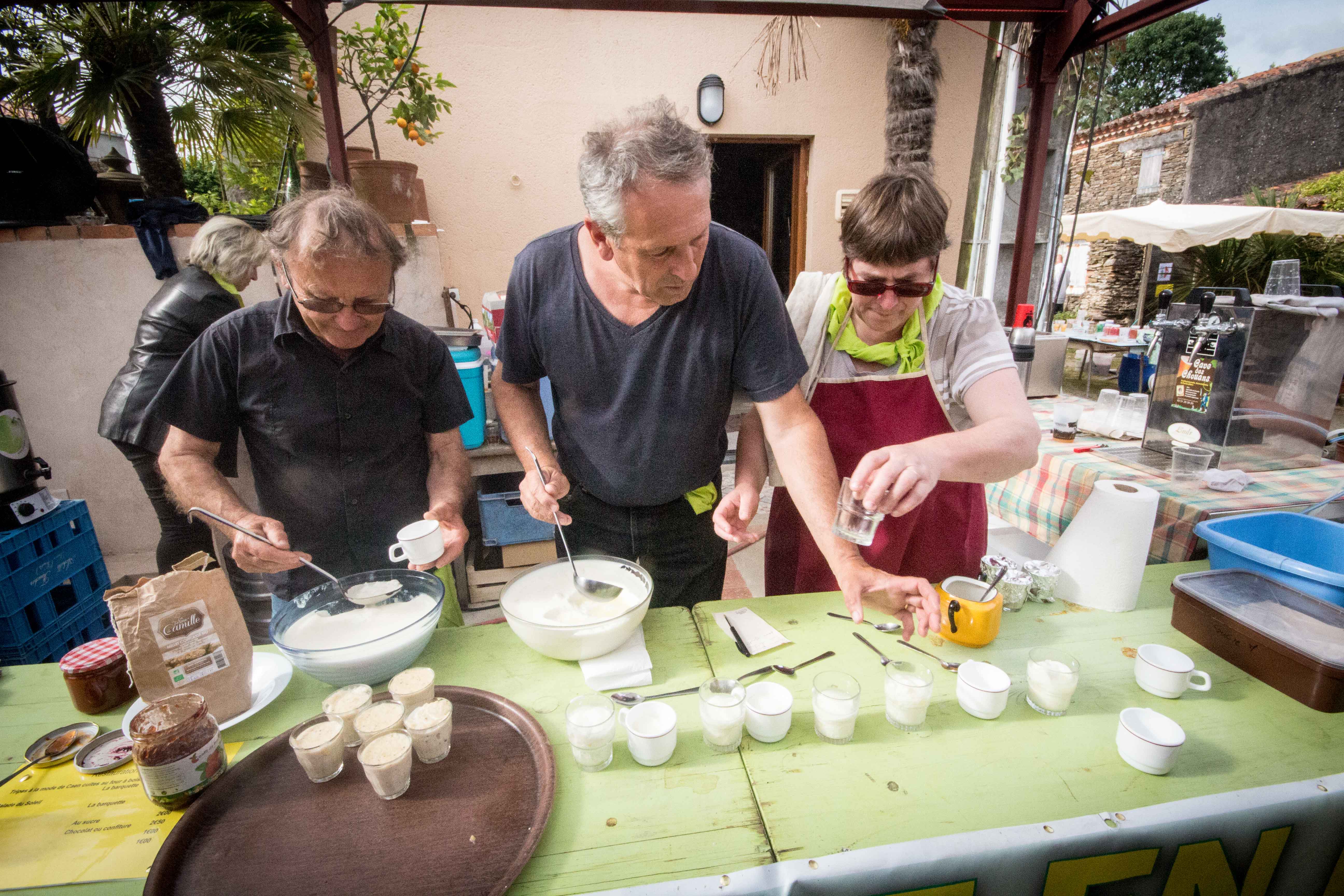 Restauration bio et ou locale : millet, caillebotte, foué, limonade de sureau, tripes au four à bois et n’oublions pas les tables du jardin libre et gratuit remplies de végétaux avec un slogan ravageur : « rempotez : remportez ». D’ailleurs il n’est pas resté la moindre herbette. Ni de bière dans les fûts au bar.