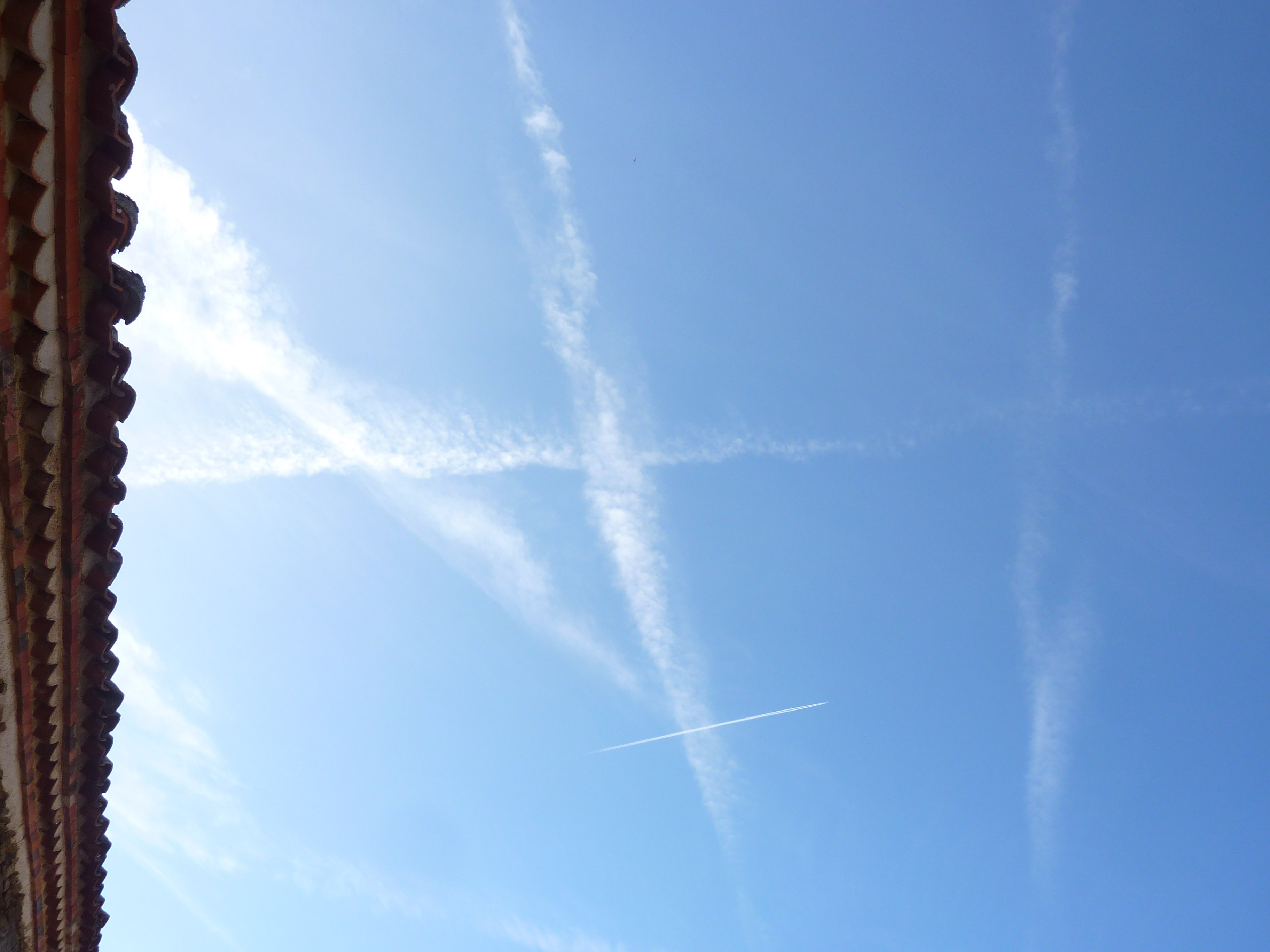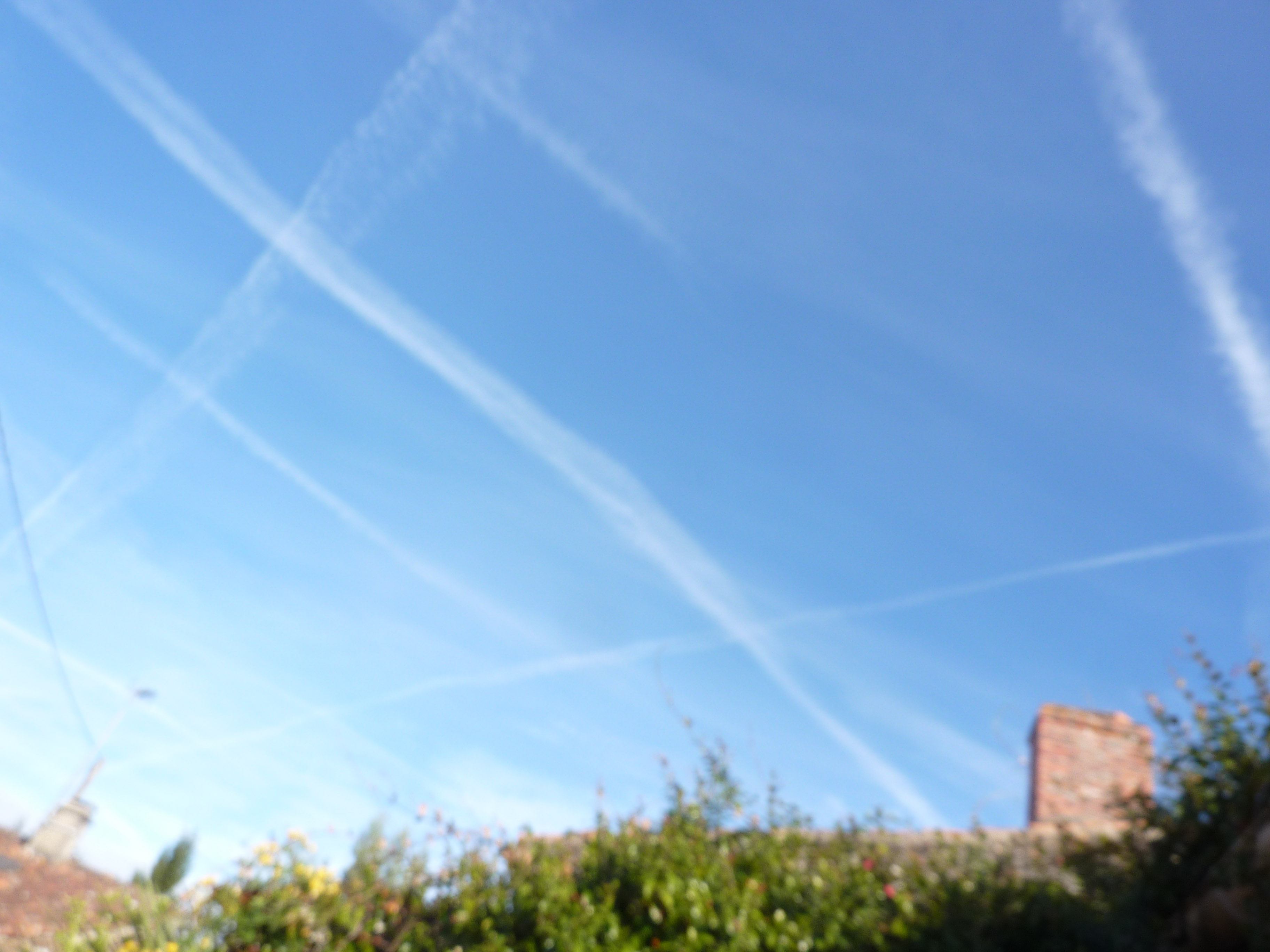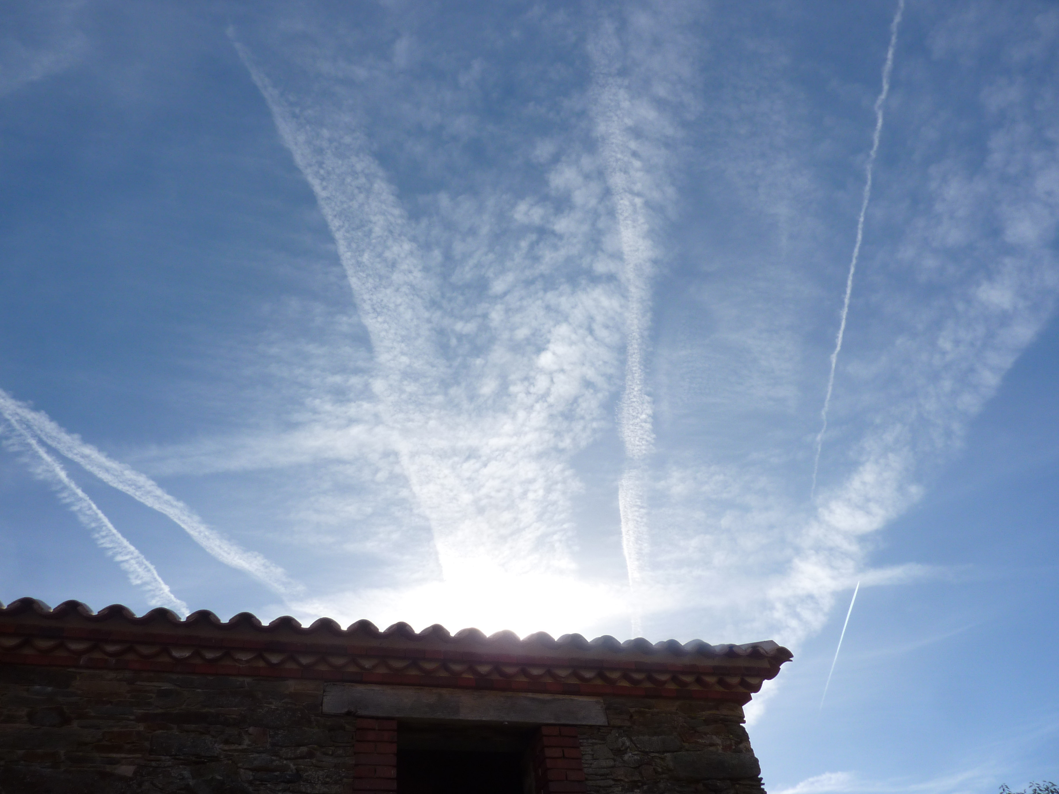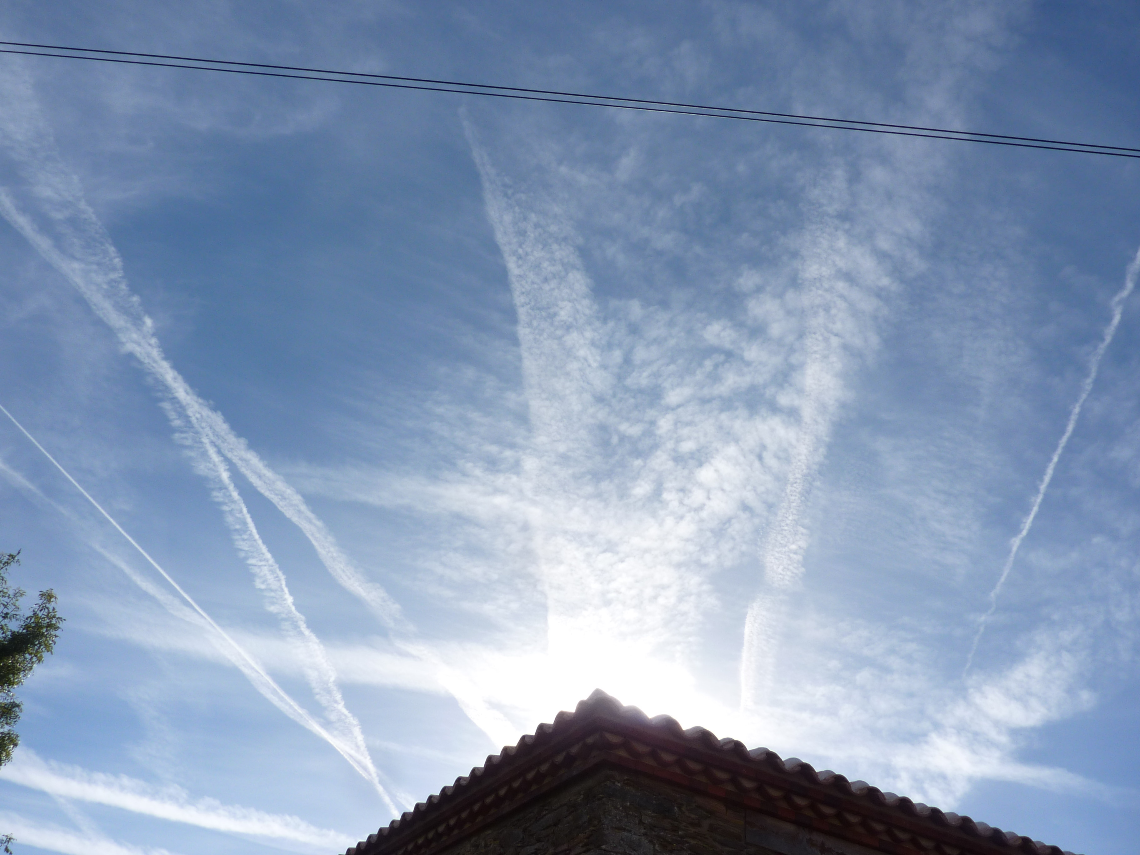 Le ciel qui était bleu s’est ennuagé.Peut-être s’agissait-il d’un simple largage de produits pour faire pleuvoir?Reste que ce mode d’action, pourrait être utilisé pour abrutir ou anéantir des populations entières