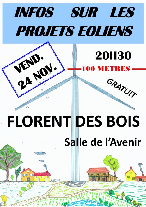 Infos sur les projets éoliens organisée* par la clé des champs. Nous allons parler du manque d’informations, d’explications et de concertations des projets en cours. Les représentants de diverses associations feront le point sur les réalisations envisagées et leur état d’avancement puisque les organismes publics, les promoteurs laissent la population dans un « silence assourdissant » (ouais, j’ai placé un oxymore).