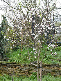 J’apprends aussi que l’amandier était cultivé en Anjou depuis le 16ème siècle. Il y trouvait les terres calcaires qu’il affectionne et sans doute assez de douceur et de lumière. Malgré cela, si l’arbre est rustique, sa floraison précoce est menacée par les gelées printanières. C’est peut-être pour cette raison que la culture a périclité ; cependant, il reste encore quelques sujets çà et là.
