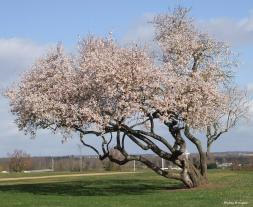 Pour illustrer mon propos, je vais vous raconter l’histoire de l’amandier « centenaire »de Doué la Fontaine (Maine et Loire). Il y a quelques années, un jour d’octobre, je visitais dans cette ville le « Musée des anciens commerces » quand mon attention fût attirée par un arbre imposant, majestueux, sur une pelouse. Je constatais en m’approchant, que c’était un amandier. Etonné par la présence improbable de ce sujet hors norme, je rejoignis l’accueil pour m’informer : « oui, monsieur, cet arbre a même eu un article dans le journal local, car malgré son âge il produit encore des amandes en abondance ».