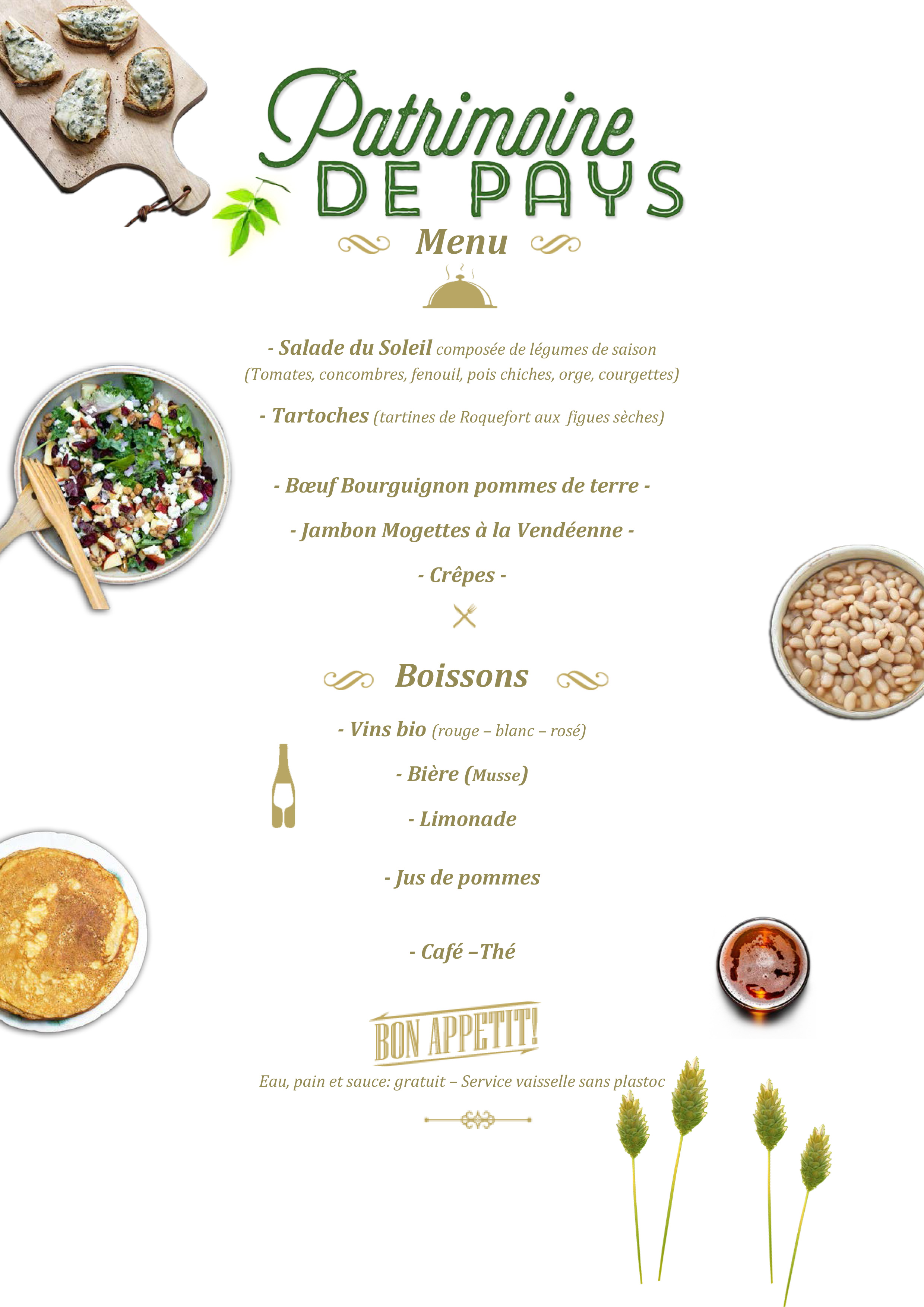 Restauration menu PATRIMOINE DE PAYS dim 25 juin 2023